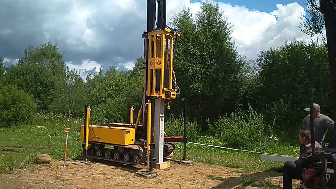 Теперь о том, как забиваются сваи. В пятне застройки снимается плодородный слой. Далее привозят специальную установку в компактном исполнении. По сути это мини-трактор на гусеничном резиновом шасси. Установка оснащена гидравлическим молотом, которым свая вгоняется в грунт строго вертикально и на необходимую глубину.