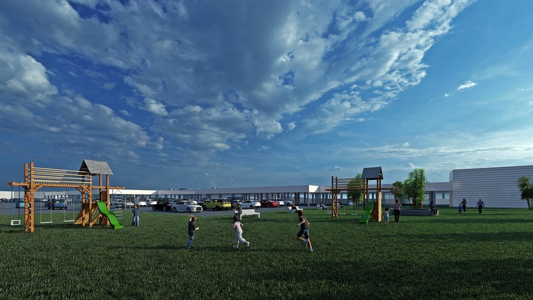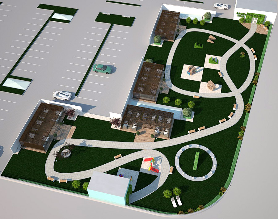 И не только. Как написано на сайте проекта, особенностью комплекса станет досуговая зона на крыше с открытыми и закрытыми беседками и детской площадкой. Сюда можно будет заказать еду с фудкорта, используя специальный терминал. А еще здесь можно организовать праздник под открытым небом.