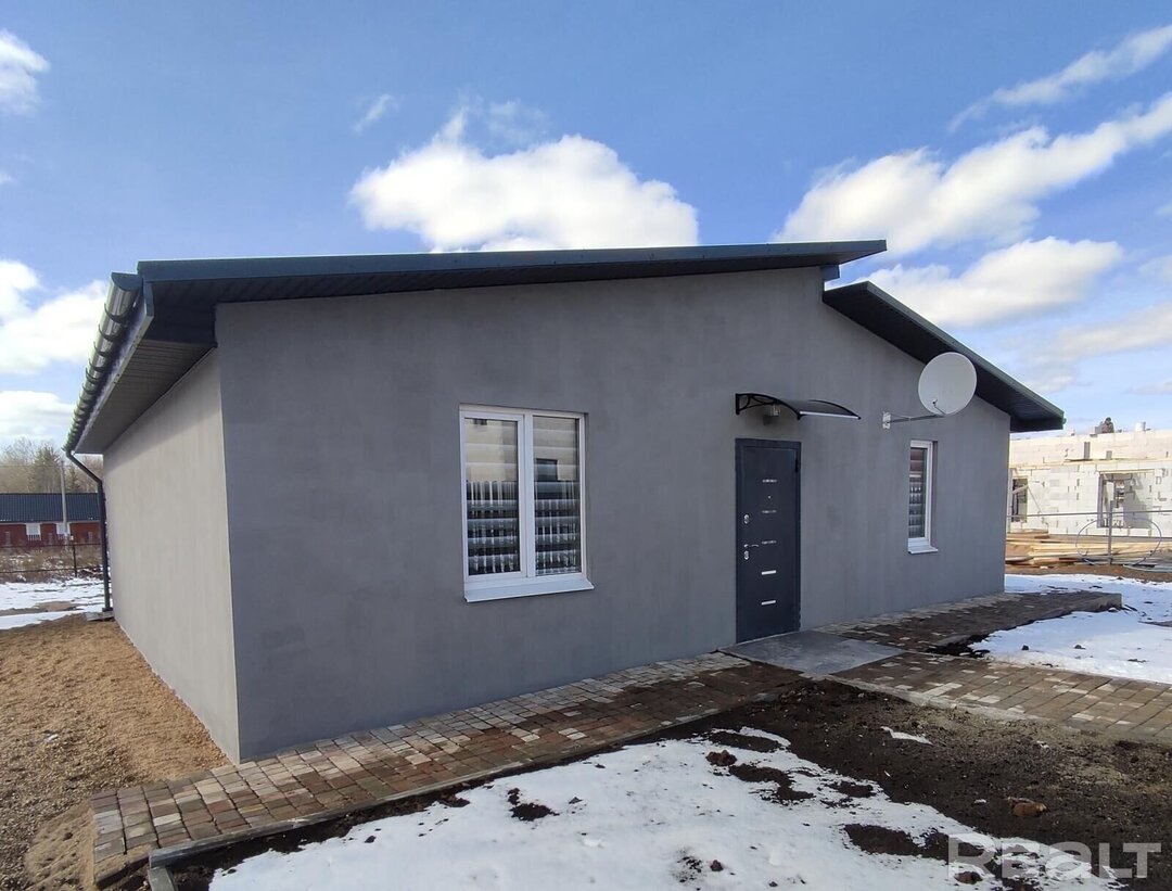 Здесь продается практически новый дом общей площадью 103,5 м2, в котором можно жить круглогодично. Стены из газосиликатных блоков (30 см), утеплены, оштукатурены и покрашены. Окна современные (ПВХ). На крыше — металлочерепица.