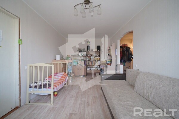 В 2022 году сделан косметический ремонт в коридоре и кухне. Установлен новый кухонный гарнитур. Одна из комнат является проходной. В двушке нет балкона, а санузел совмещенный. Возможна продажа с мебелью.