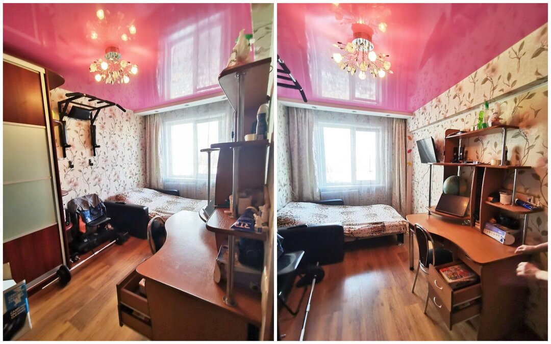 Трехкомнатная квартира находится в панельном доме 1973 года постройки на проспекте Пушкина, 23. В 2016 году в доме проходил капитальный ремонт. Ее общая площадь составляет 62,99 м², а размер кухни - 7,6 м².