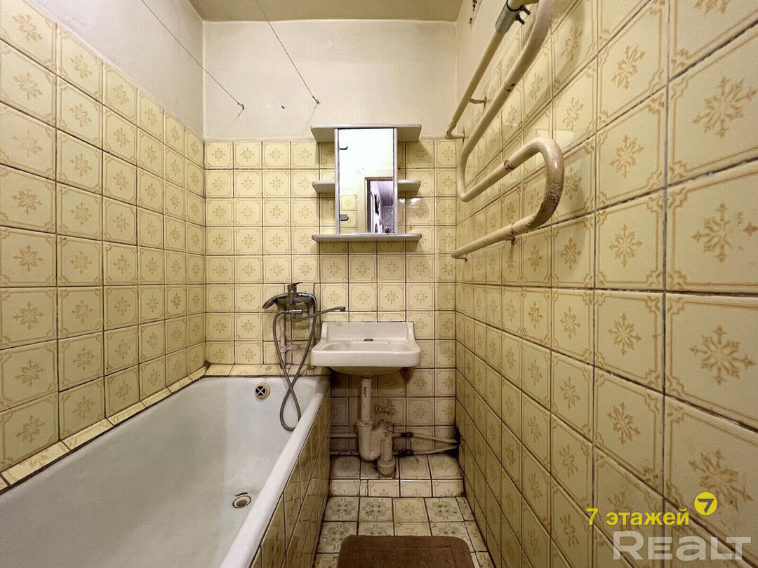 Ремонт квартире необходим. Возможно, найдутся ценители, которые сохранят в квартире старый паркет. Владельцы оставляют покупателям и мебель, и бытовую технику. В квартире есть балкон и совмещенный санузел.