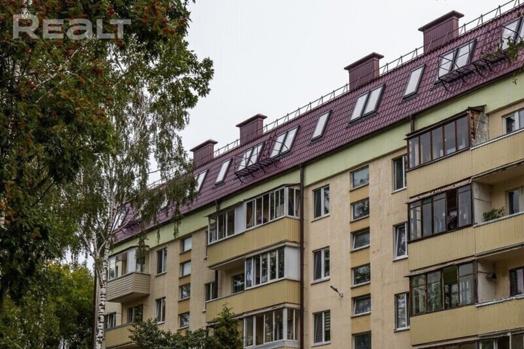 Жилье располагается на последнем этаже шестиэтажки. К слову, шестиэтажными этот и еще несколько домов на Янки Мавра стали не так давно. Несколько лет назад во время капремонта с согласия жильцов в домах № 29, 31 и 33 надстроили шестые этажи, каждый подъезд увеличился на 3 квартиры. Жилье новоселам досталось тогда по ценам чуть ниже рынка. В 2018 году компания продавала строящиеся квартиры по стоимости от $ 980 за «квадрат», когда средняя цена метра в столице составляла $ 1250−1320. Мы рассказывали историю этого и других домов с мансардными квартирами в прошлом году.