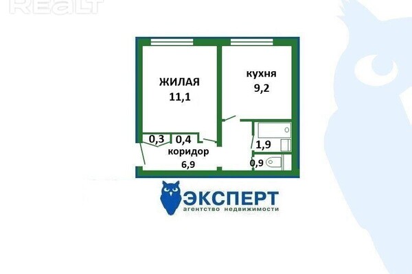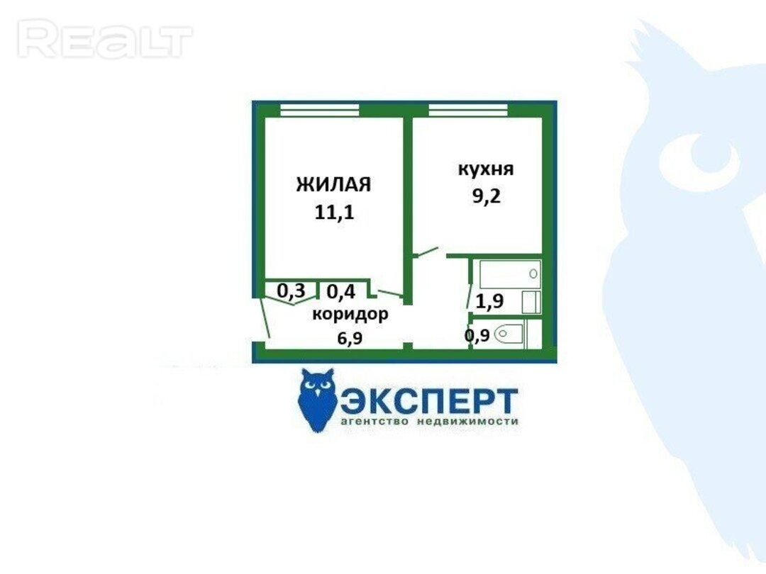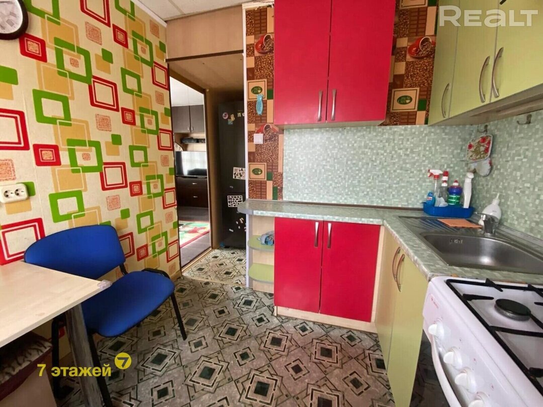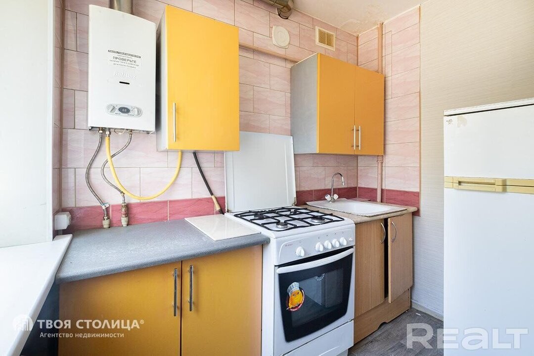 Квартира находится в пятиэтажной хрущевке 1966 года постройки по адресу улица Пуховичская, 19. Капитальный ремонт проходил в 2011 году. Общая площадь однушки - 30,64 м², кухня занимает 5,4 м².