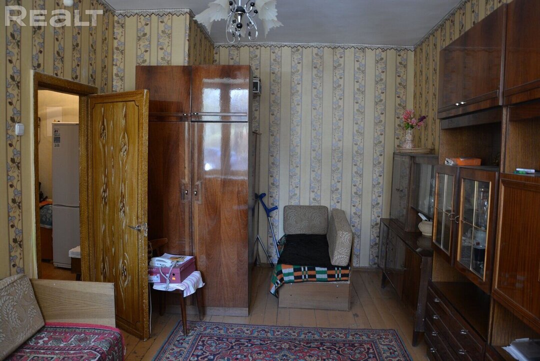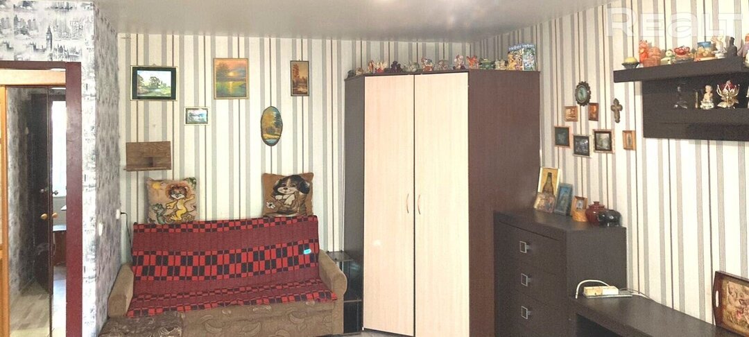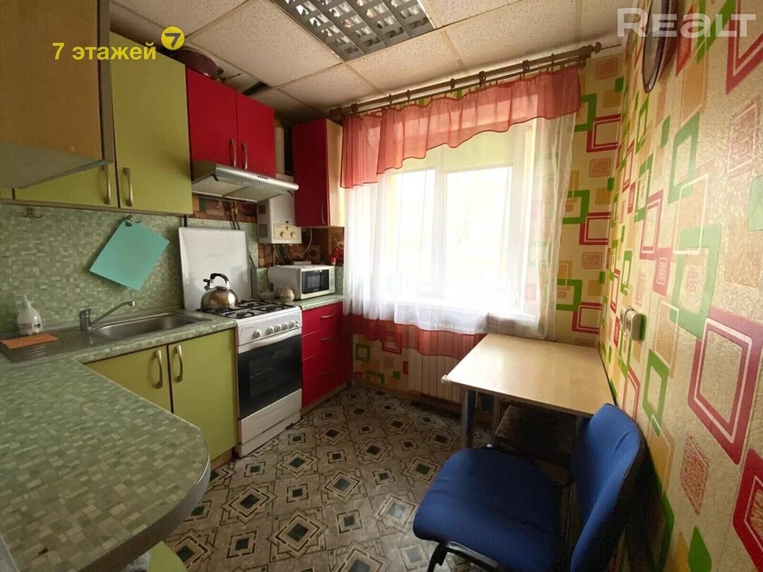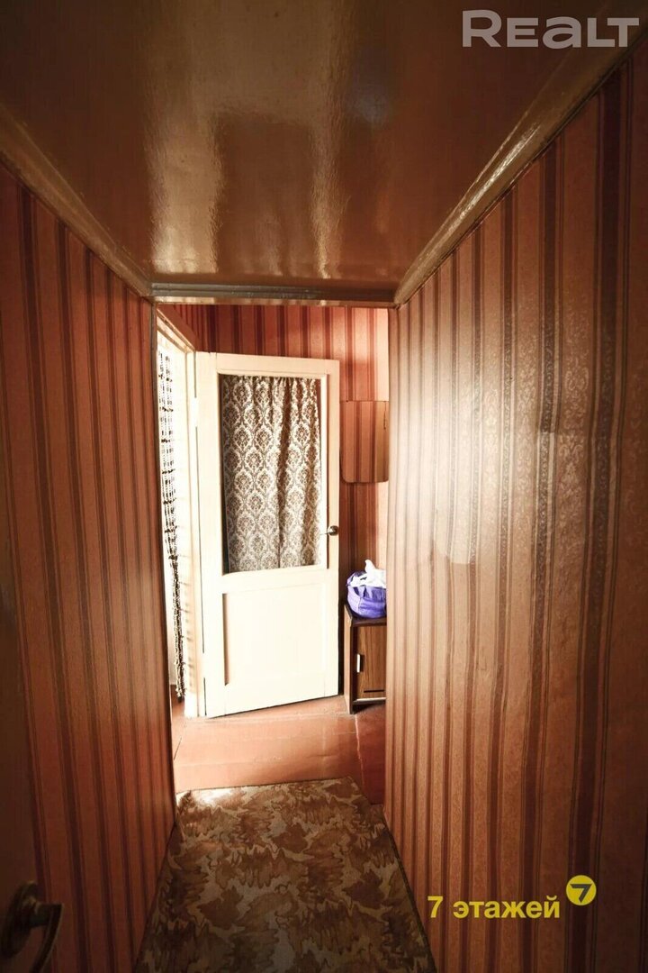 Однокомнатная квартира располагается на улице Пуховичская, 12 в трехэтажном доме 1960 года. Она находится на втором этаже и занимает 31,44 м² с кухней в 6 м².