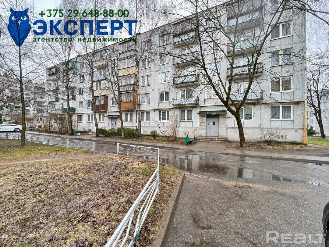 Квартира находится в пятиэтажной хрущевке 1961 года на втором этаже. Дом располагается на улице Максима Богдановича, 135. Общая площадь объекта - 29, 4 м² с кухней в 6 м².