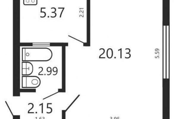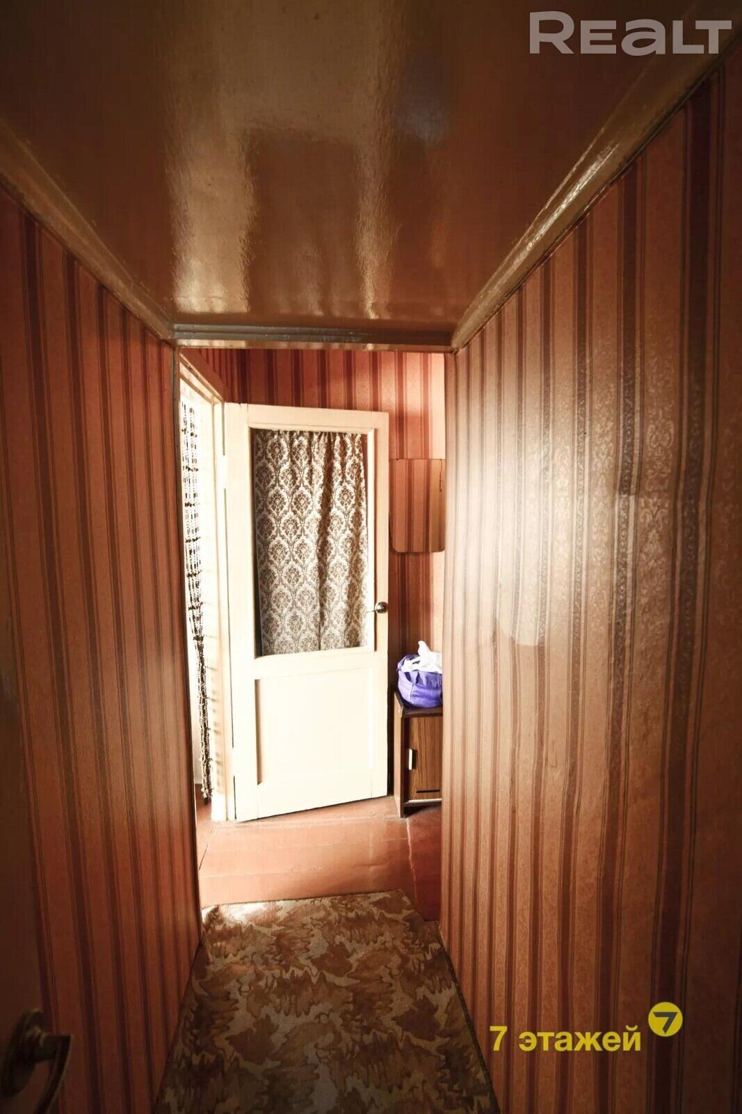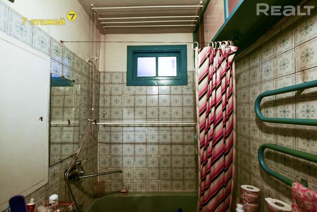 В квартире остаются встроенные шкафы. Полы — ламинированные. Стены выравнены и есть натяжной потолок, установлены стеклопакеты. Балкона здесь также нет, но имеется подвал в доме. Санузел в квартире совмещенный.