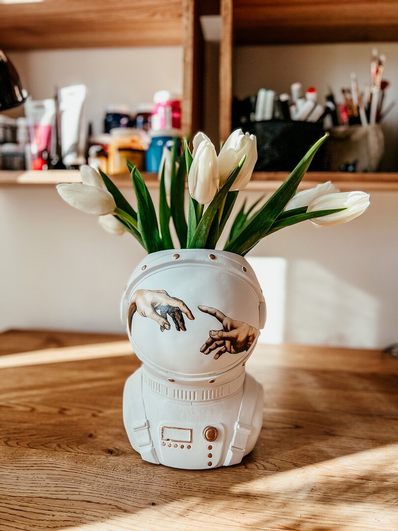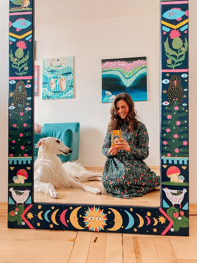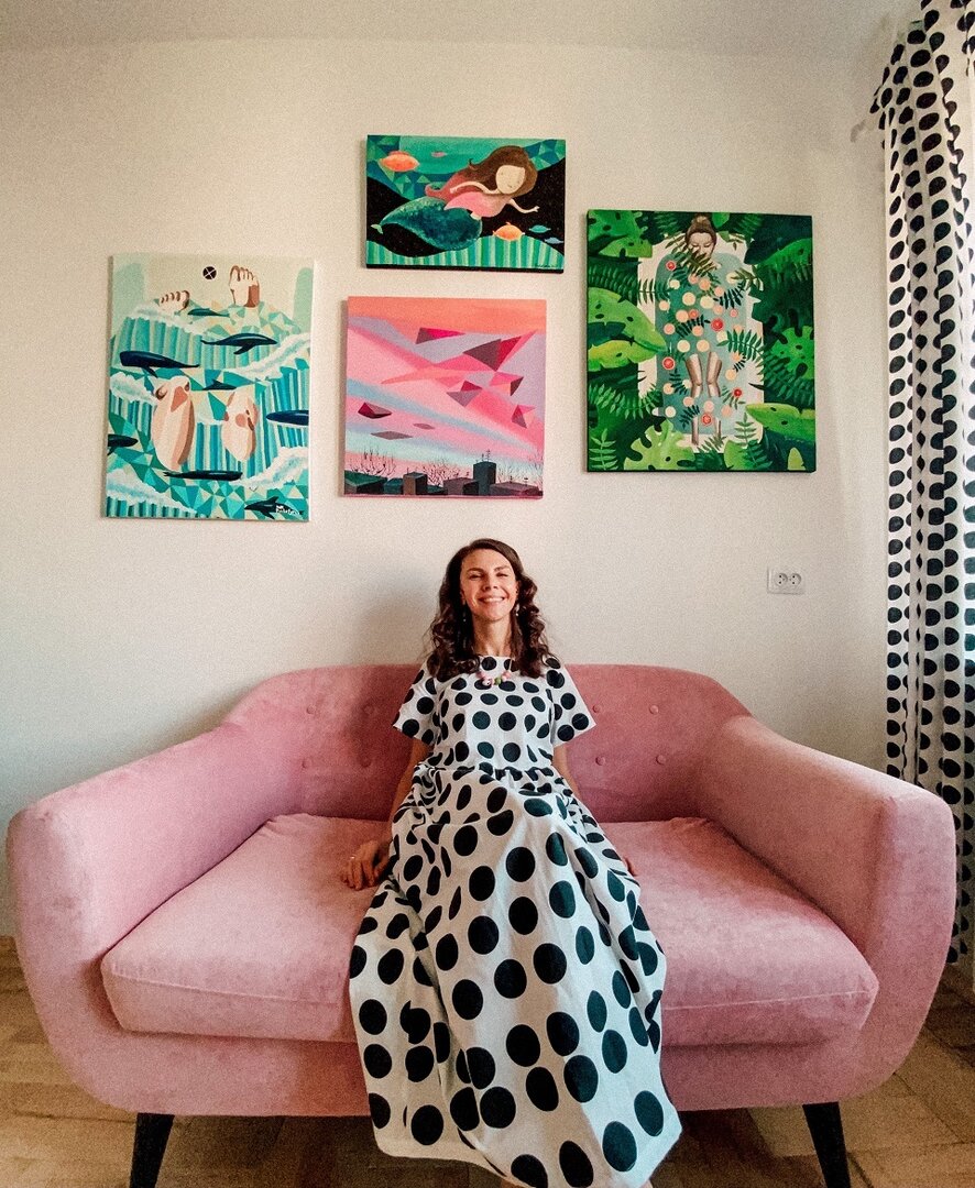 Все картины в квартире — авторства Томы. А большинство элементов декора — либо ручной работы, либо привезены из путешествий. Например, пара любит привозить кукол в национальной одежде и разного рода маски. «Правда, повесить на стену их пока не можем, потому что пока неизвестно, как будет расположена мебель».
