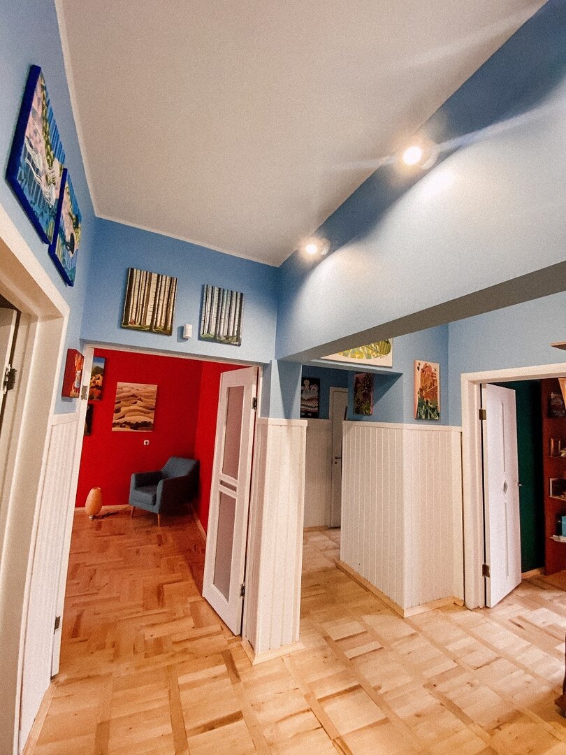 — В целом, ремонт мы закончили, но не хватает еще кое-какой мебели, — добавляет Тома. — Зал, например, пока больше похож на галерею — там только картины и диван для гостей. Ждем, пока будут готовы шкафы.