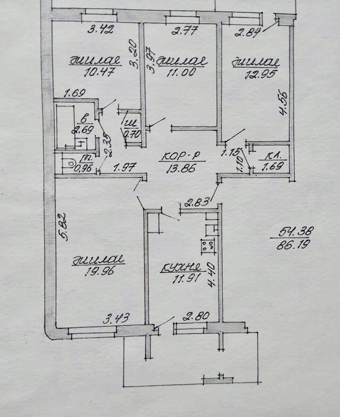 Планировку оставили прежней — Тома говорит, что в целом она удобная: большая прихожая, отдельная кухня и четыре раздельные жилые комнаты.