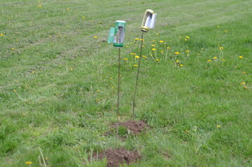 Метод, достойный внимания. Бутылки закапывают почти вертикально, над землей остается лишь горлышко (оно должно выступать из земли на 2−3 сантиметра). Считается, что кроты не вынесут воя ветра в бутылках и уйдут.