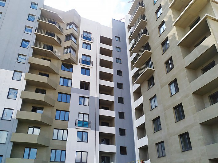 — Дом на завершающей стадии строительства. Полностью выполнены монолитные и кладочные работы, электротехнические и сантехнические, на 95% - штукатурные. Заканчиваем установку столярных изделий и приступаем к внутренней чистовой отделке помещений общего пользования, — рассказывает Роман Козловский, прораб генподрядного филиала СУ-199 ОАО «Стройтрест № 35». — Фасад утеплен и оштукатурен, со дня на день начнётся его покраска. В настоящее время на объекте работают порядка 110 человек, в основном это отделочники, штукатуры, столяры и фасадчики.