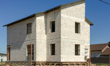 Коробка стояла на монолитном фундаменте и представляла собой стены из газобетона шириной 40 см. Утепляли их минеральной ватой. Ребята решили прибавить строению долговечности и добавили кирпич. При этом между ним и утеплителем оставили вентилируемый зазор в 5 см.