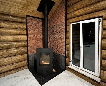 С коммуникациями, мебелью и камином. У Налибокской пущи продается миниатюрный и недорогой дом из бруса