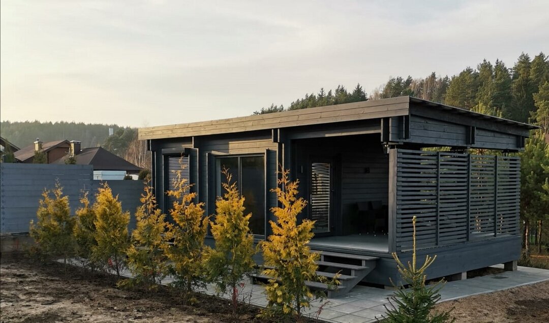 По внешнему виду существуют вариации. Самый простой вариант выглядит как бытовка с двускатной крышей, но зачем выбирать такую, если есть более современные варианты?