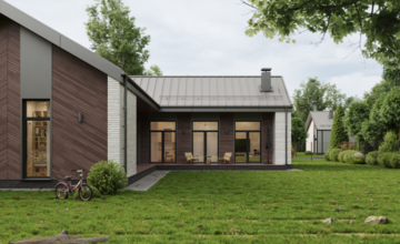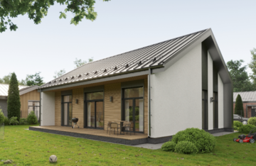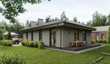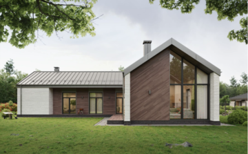 Из трех помещений есть выход на просторную террасу, что построят вдоль всей длины дома. Большая зона остекления визуально соединяет пространство с природой и наполняет дом естественным светом.