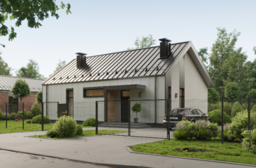 Дом в 120 квадратных метров вмещает в себя 2 спальные комнаты, 2 санузла, совмещенную кухню-гостиную и котельную. Застройщик предлагает обустроить еще одну жилую комнату вместо одного санузла и гардеробной.