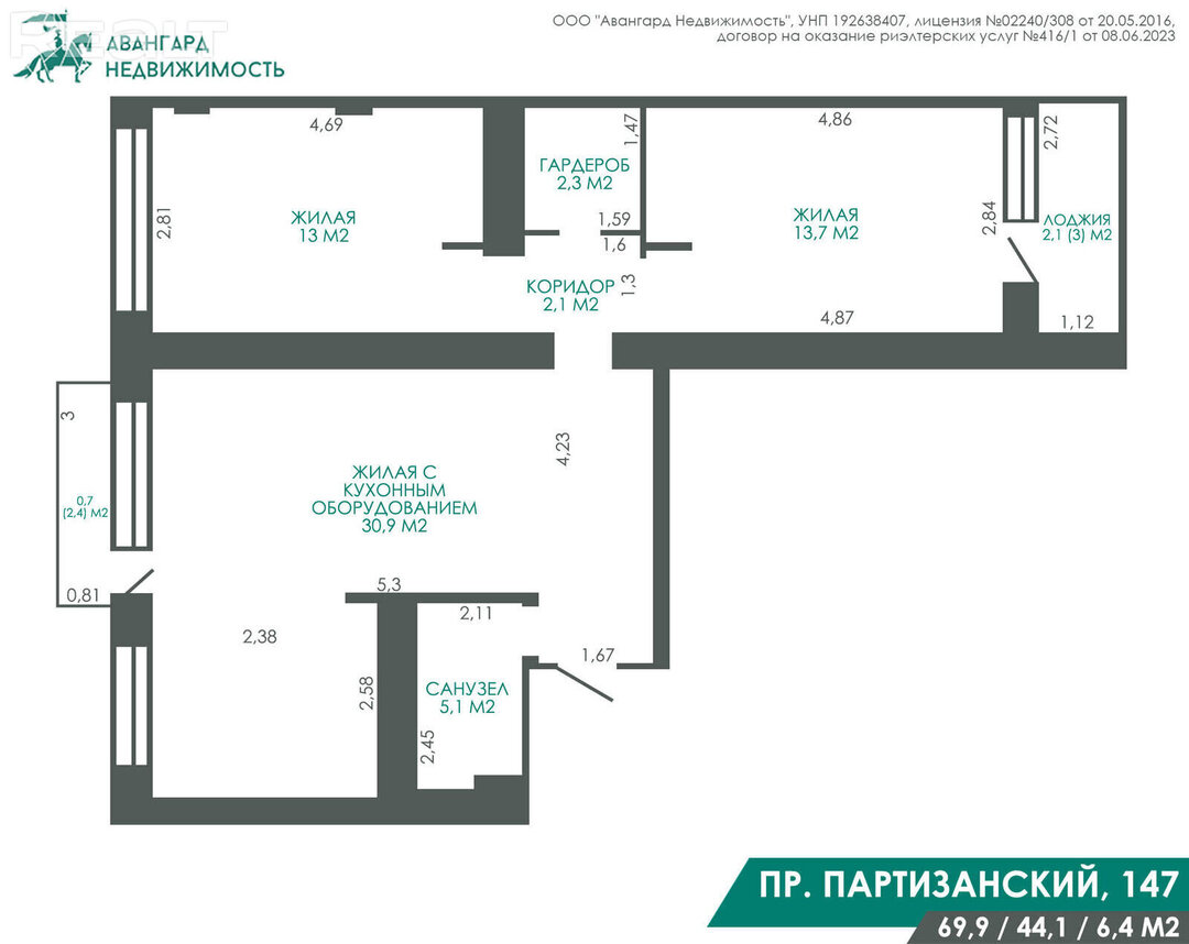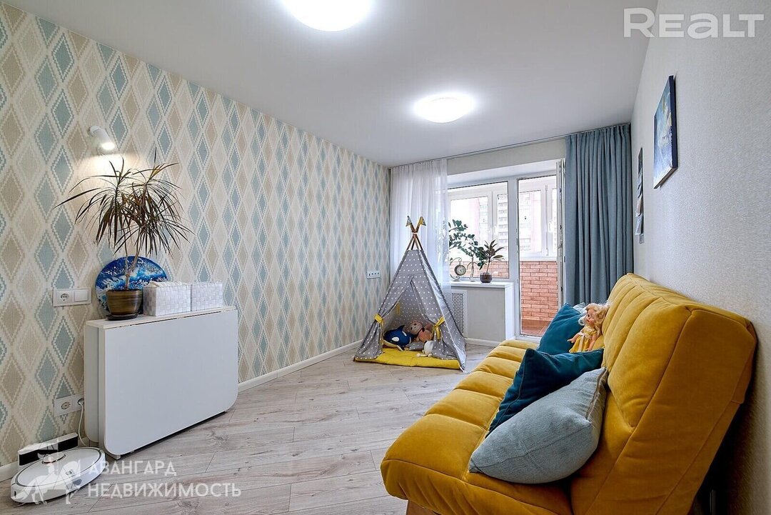 Девятиэтажный дом с кирпичными стенами с железобетонными перекрытиями на Партизанском проспекте, 147 был возведен в 1974 году. В 2018 в нем провели капитальный ремонт. На седьмом этаже там продается квартира в 69,9 м². Трешку владельцы переделали: оставили две индивидуальные комнаты, а коридор, гостиную и кухню совместили.