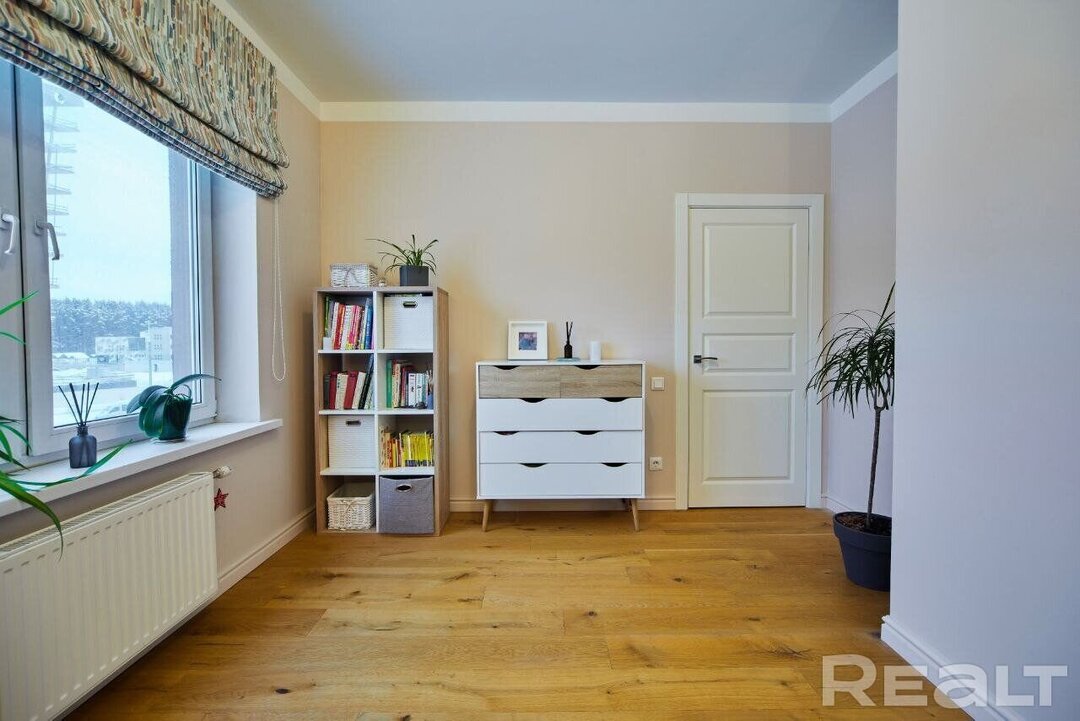 Квартира обставлена дизайнером в скандинавском стиле. Светло-серые стены разбавляют яркие фасады мебели, предметы декора из Нидерландов, Португалии, Швеции и подлинные картины белорусских художников.