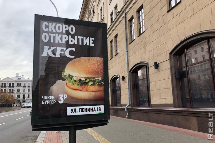 KFC — крупнейшая по охвату сеть фастфуда в Беларуси. Ее развивают два франчайзи — «Бел Фуд Сервис» и «КреативФудС-Восток». У первой компании 54 ресторана, у второй — 29.