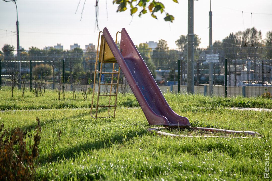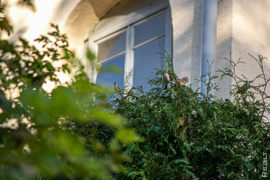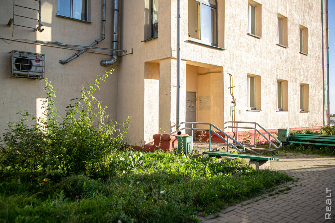 Если посмотреть на этот дом на карте, он словно стоит на острове: с одной стороны дорога, с другой — огромный Минск Мир. В жизни тоже заметны яркие контрасты. Во дворе сушится белье, на турнике висит самодельный умывальник, сделанный из двухлитровой пластиковой бутылки, а мужчина чинит автомобиль лежа на земле — все атрибуты для тех, кто хотел бы поностальгировать по прошлому. Людей здесь совсем не много. За час можно не встретить никого из соседей.