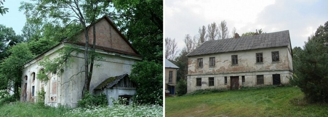 Два года назад мы рассказывали и про главное здание усадьбы, которое в 2013 году комплекс выкупил с аукциона предприниматель из Минска. Собственник намеревался открыть здесь отель со спа-центром, рестораном и музеем. К сожалению, воплотить в жизнь эти задумки не получилось. Новый хозяин успел поставить ограждение, нанять сторожей, закупить собак и вывезти из усадьбы два самосвала мусора.