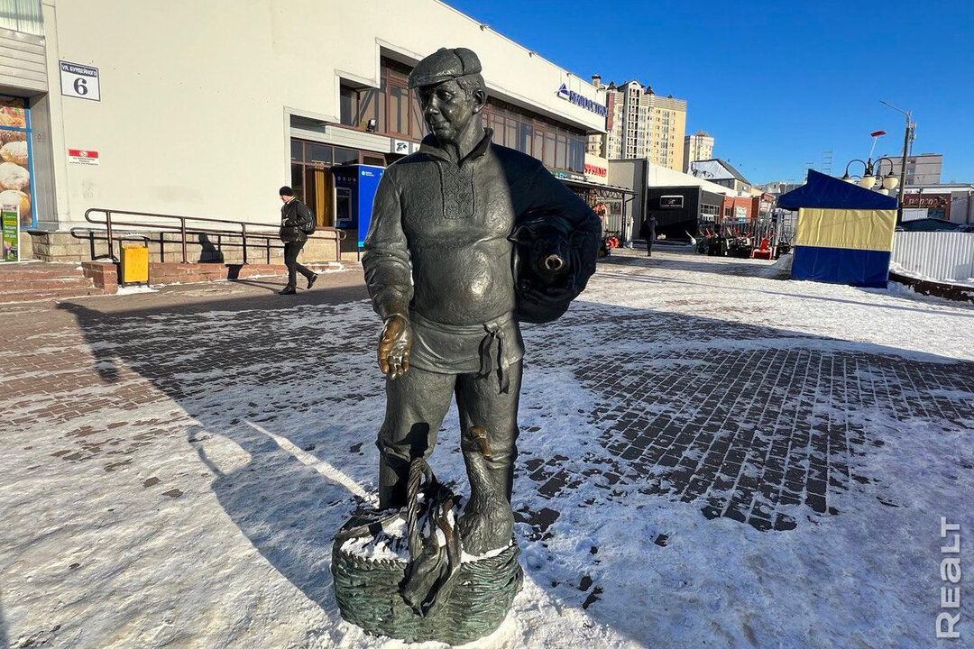 1949Скульптуру «Торговец арбузами» поставили на минском рынке «Заходні». Теперь рядом стоят два «торговца» — тот, что продает арбузы, и Дядька Антось, который появился здесь еще в декабре 2013 года.