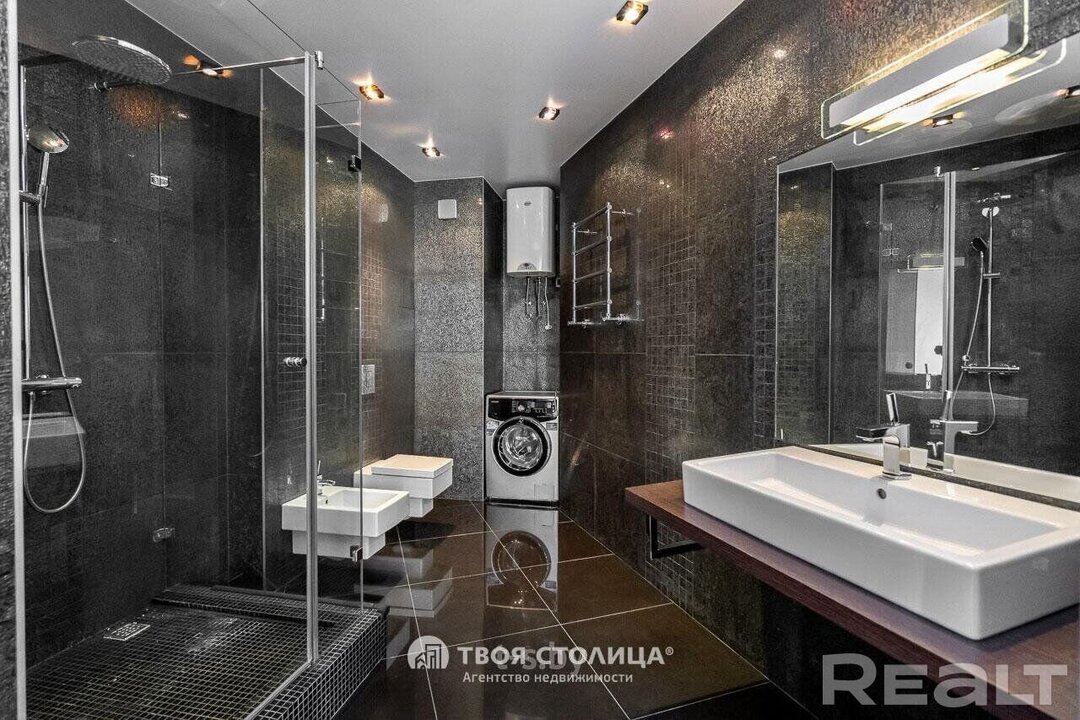 Еще один любопытный вариант — двухкомнатная квартира на 9-м этаже. Площадь этой двушки с интересной конфигурацией составляет целых 80 квадратных метров. В квартире выполнен современный дизайнерский ремонт с использованием импортных материалов. Встроенная кухня наполнена необходимой бытовой техникой (встроенный холодильник, посудомоечная машина, варочная панель, духовой шкаф, вытяжка). В прихожей и спальне оборудованы гардеробные. Для комфортного климата в квартире установлены кондиционеры. Стоимость — 119 тысяч долларов (1448 долларов — за метр).