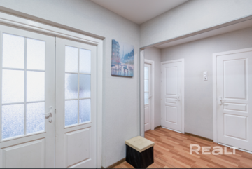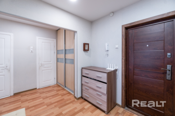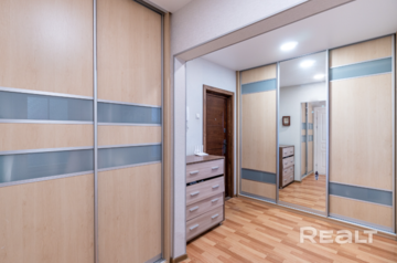В квартире сделан хороший ремонт. На полу лежит линолеум. В коридоре стоят два шкафа-купе, в кухне есть гарнитур и бытовая техника.