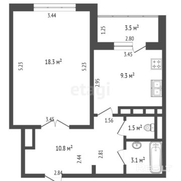 Стоимость квартиры - 69 тысяч долларов. Метр - 1 530 долларов.