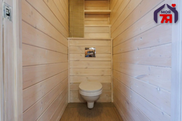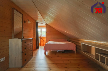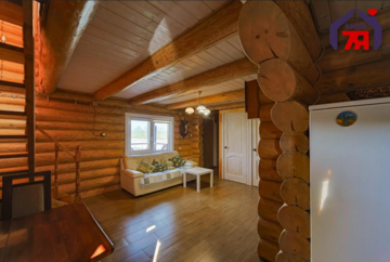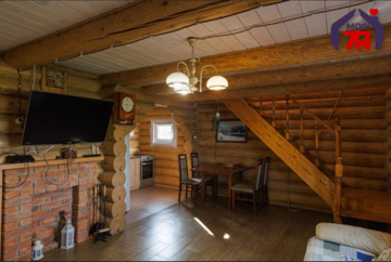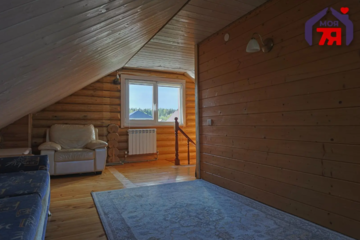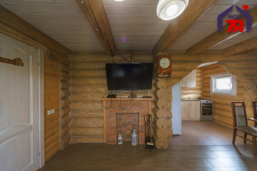 Дом находится в самом Логойске. Его построили в два уровня в 2019 году. Он выполнен из оцилиндрованного бревна. Произведена герметизация дерева по технологии «теплый шов». Снаружи и внутри все обработано антисептиком. Кровля утеплена и пароизолирована, поверх уложена металлочерепица. Общая площадь дома — 70,9 м².