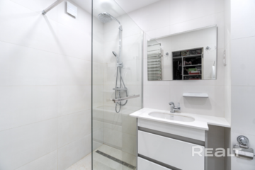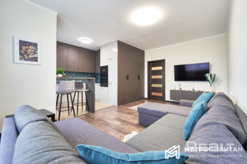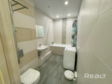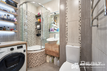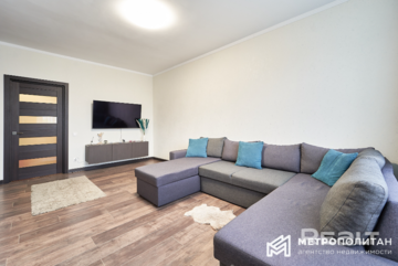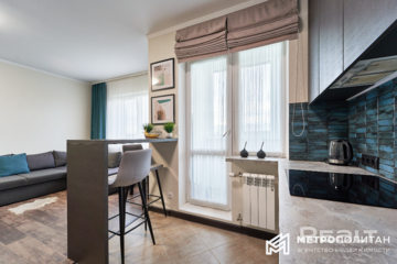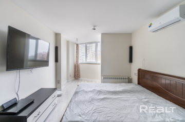 В квартире сделан хороший ремонт. Здесь выполнена дополнительная шумоизоляция потолка, выровнены стены, сделан теплый пол. Работают кондиционер и бойлер.