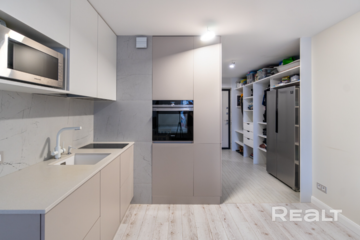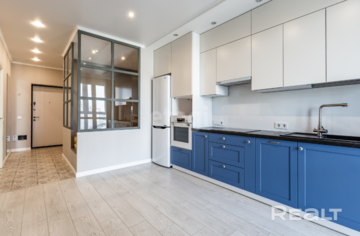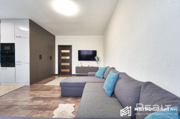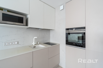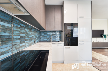 Квартира готова к проживанию. В ней остаются вся мебель и техника: духовой шкаф, индукционная варочная панель, посудомоечная машина, вытяжка. Планировка хороша и тем, что кухня-гостиная и коридор разделены. Есть несколько шкафов для хранения вещей.