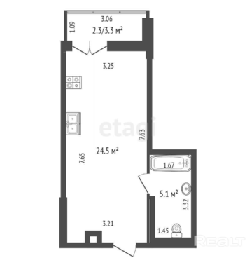 Студия обойдется в 59 900 долларов. Метр стоит 1 788 долларов.