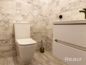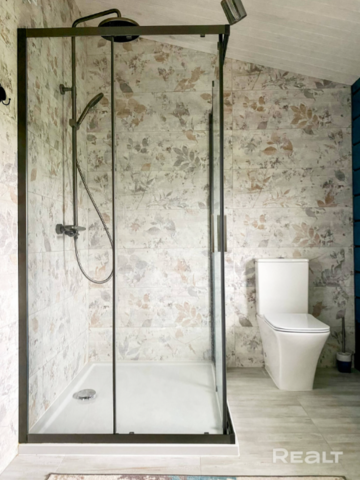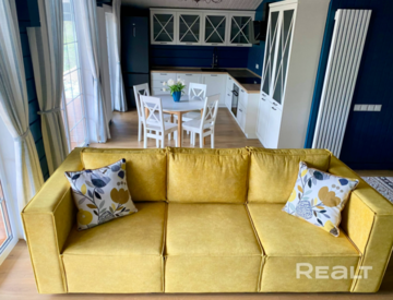 Здесь обустроены кухня-гостиная с выходом на террасу, две спальни, два санузла и топочная. Остаются покупателю мебель и техника.