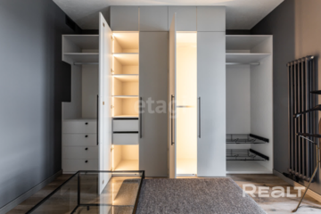 Строил десятиэтажный каркасник с подземным паркингом «Минскстрой». Ранее мы писали про две готовые для жизни квартиры. Одна из них по-прежнему находится в продаже. А недавно в базе Realt появилась обставленная студия в 89,9 квадратного метра.