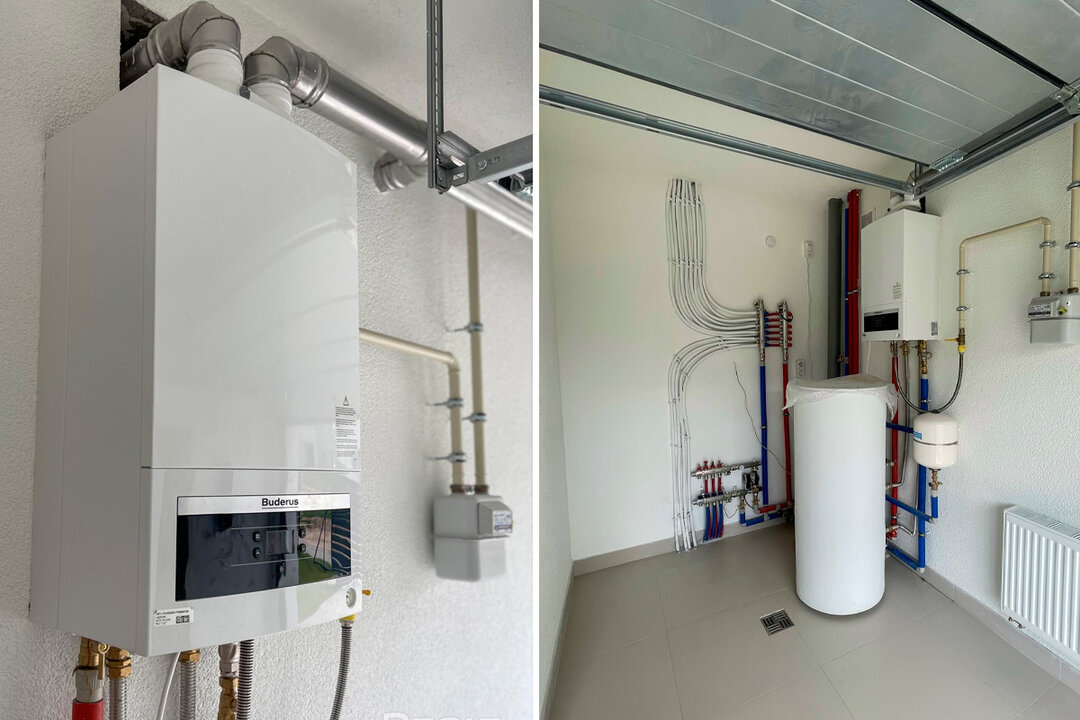 Все таунхаусы двухэтажные, их площадь — 127 квадратов. Второй этаж не мансардный. Таунхаусы сдаются под чистовую отделку. Проведена центральная канализация, отопление газовое, котел одноконтурный «Дедитрих». Установлен бойлер на 140 литров. На первом этаже теплые полы, на втором — радиаторы под каждым окном.