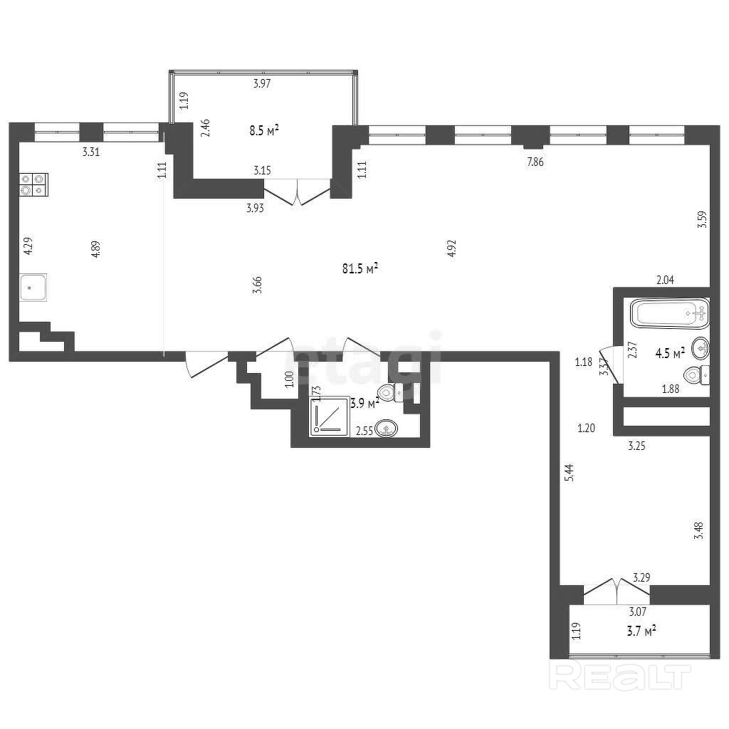 За квартиру просят 349 тысяч долларов. Метр выходит по 3543 доллара.