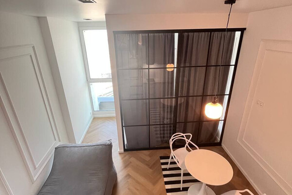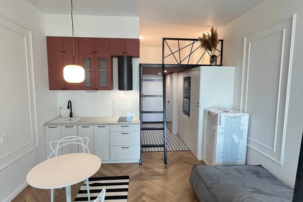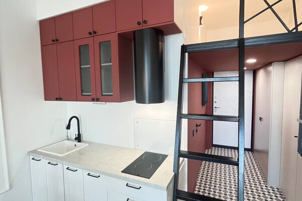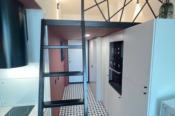 18452Мы привыкли, что оборудовать второй этаж в квартире — роскошь для владельцев сталинок с высокими потолками. Но эта квартира в Минск Мире — исключение из правил. Спальное место под потолком сделали в стандартной студии, где потолки 2,7 метра. Давайте посмотрим, как это выглядит.