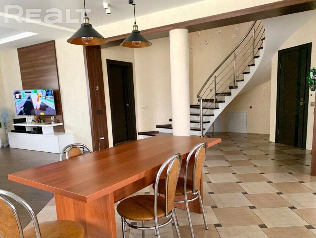 Два входа, по санузлу на этаж, 3 спальни, большая гостиная-кухня снизу и поменьше комната с кухонным оборудование наверху.