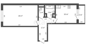 Из кухни можно выйти на лоджию. Имеется ванная комната и туалет.