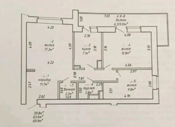 В доме на седьмом этаже продается трехкомнатная квартира. Ее площадь — 63,6 м². Кухня занимает 7,1 м².