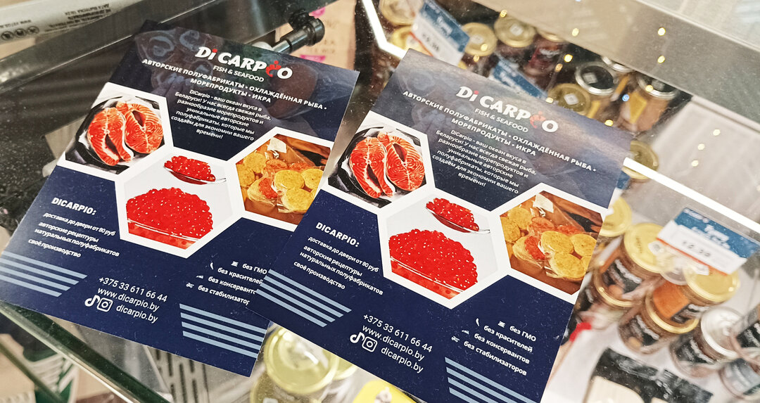 С мясом вопрос решили, нас ждет рыбный отдел. В недавно открывшемся магазине рыбы и морепродуктов DiCarpio большой выбор свежей, мороженой и соленой рыбы, различных паштетов и полуфабрикатов. Продавцы рекомендуют присмотреться к филе тунца в банке (от 8,70 BYN/банка) как к источнику натурального белка. А для разнообразия рациона выбрать пельмени с креветками (17 BYN/пачка).