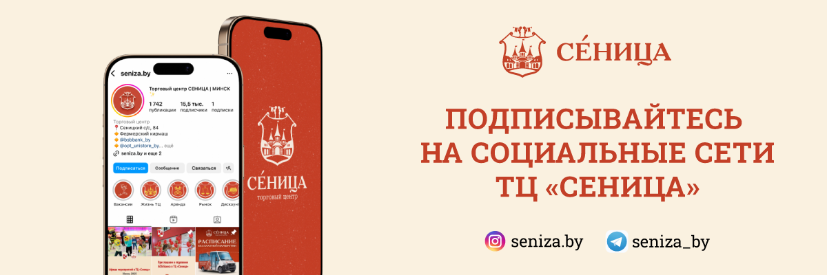 Чтобы быть в курсе всех интересных событий, подписывайтесь на аккаунт торгового центра «Сеница» в Instagram. Там вы найдете расписание мероприятий, анонсы, конкурсы и другие новости.