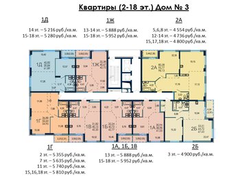 Застройщик предлагает к покупке несколько вариантов квартир в домах № 3 и № 4. Так, проектом предусмотрены варианты от 40 до 101 квадратов. Они расположены со 2 по 18 этажи. При этом если вы выбрали квартиру метражом от 54 квадратов, то здесь необходимо будет купить и одно машино-место в подземном паркинге.