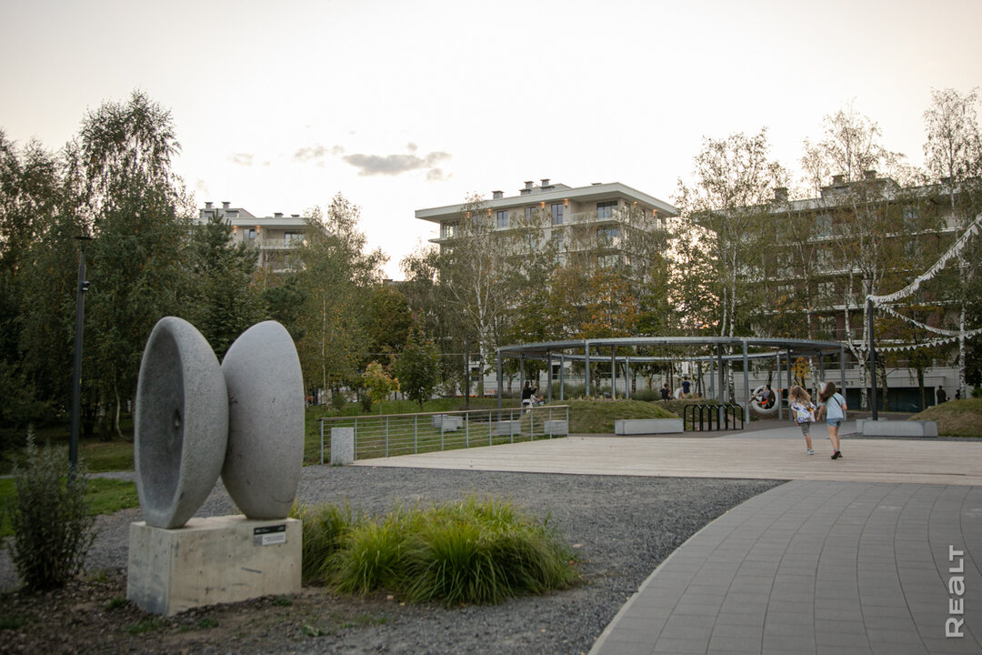 Как и обещал арабский инвестор, освоение территории нового квартала начали с общественного пространства. Так, к лету 2023 года на берегу Цнянского водохранилища появились необычные арт-объекты, к созданию которых приложили руку известные белорусские скульпторы.