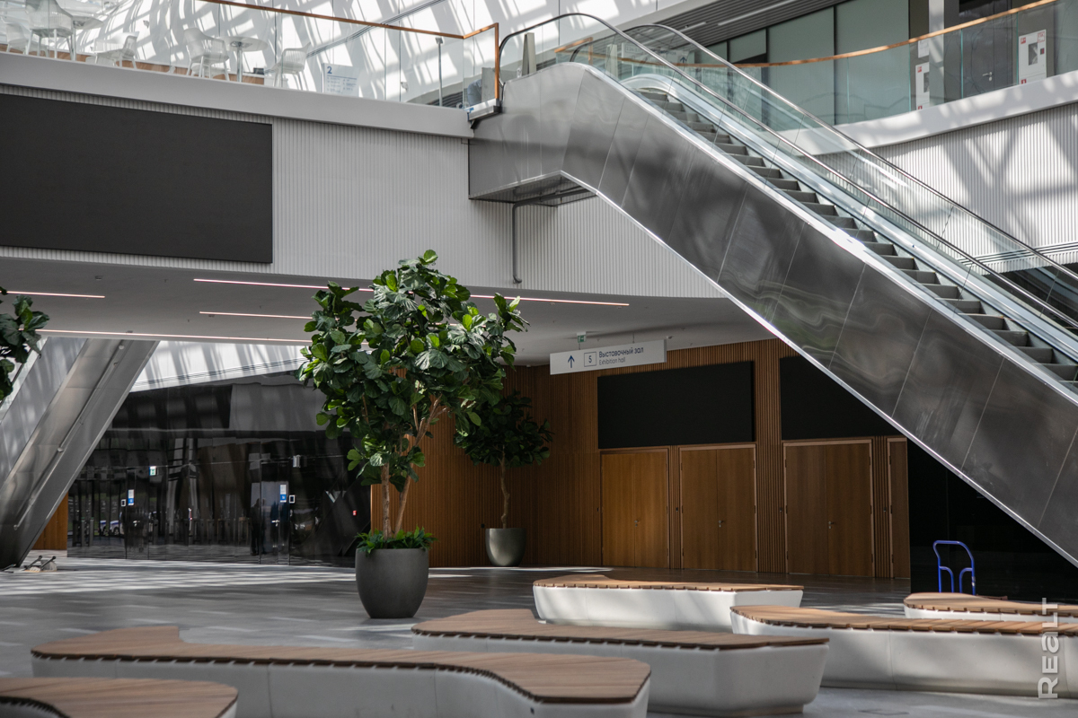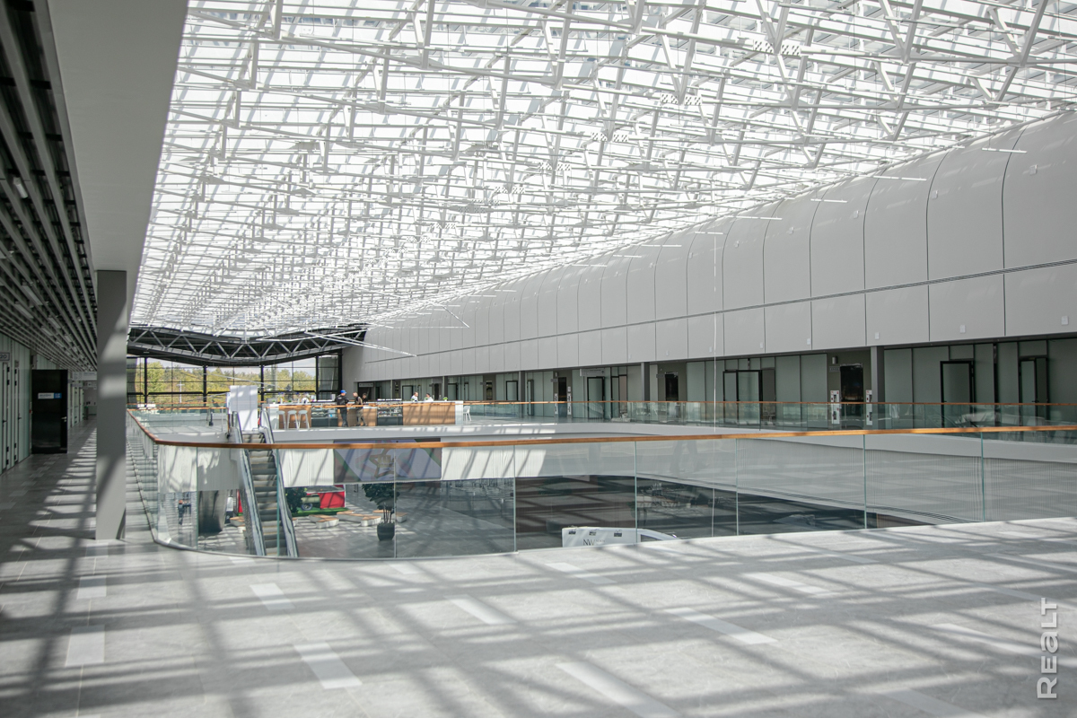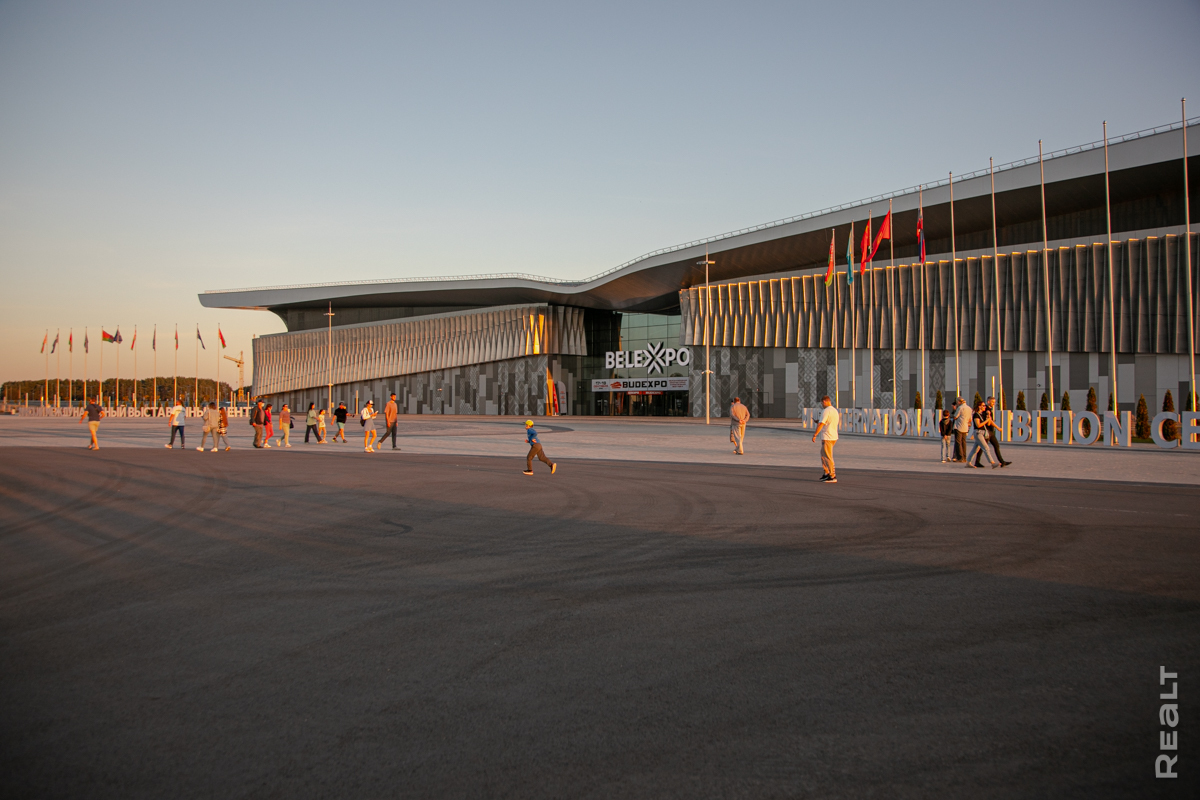 В 2022 году строительство началось с возведения Национального выставочного центра. Здание строилось в футуристическом стиле с использованием сложных фасадных конструкций, а также украшалось белорусским орнаментом. Общая площадь — 37 тысяч квадратов. При этом в нем два крупных зала площадью 6 и 8,6 тысячи квадратных метров, высота потолков — 14 метров. Свои двери центр открыл в конце 2024 года, торжественное официальное открытие прошло в мае 2025-го. Сейчас центр стал местом, где проводятся масштабные выставки и презентации.
