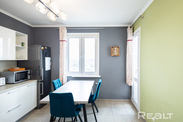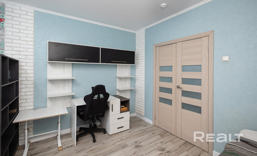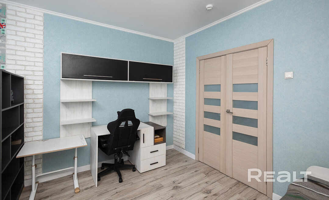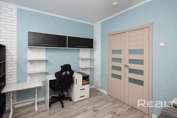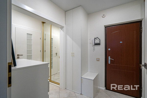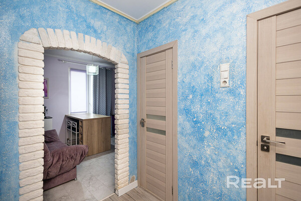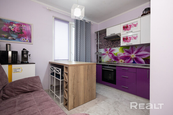 Один из наиболее доступных вариантов — это просторная однушка в жилом комплексе «Клевер парк». Панелька, в которой она находится, была построена в 2013 году. В доме есть собственная ухоженная территория, а на въезде стоит шлагбаум. Кроме того, на каждую квартиру предусмотрено машиноместо, а также колясочная на первом этаже и консьерж. Сама квартира общей площадью 45,3 квадрата, из них 9,5 м² занимает кухня — на ней есть барная стойка и большой диван. В однушке сделан качественный ремонт. Просторная комната площадью 17,9 м² зонирована, что помогает легко организовать пространство для отдыха и работы. В прихожей установлены встроенные вместительные шкафы. Лоджия застеклена. Просят за такую квартиру 84 тысячи долларов (1 854 тысячи долларов — за метр квадратный).