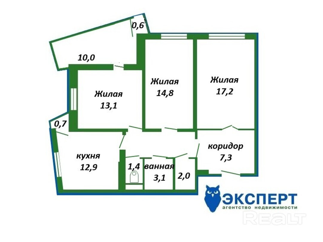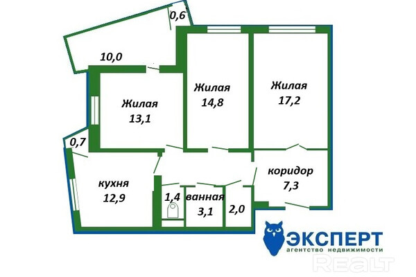 Еще одна трешка выставлена на продажу в ЖК «Клевер парк». Она находится на девятом этаже дома, построенного в 2014 году. В нем есть консьерж. Общая площадь квартиры — 78,4 метра квадратных. В ней три раздельных комнаты, просторная кухня площадью 12,9 квадратов, застекленный и утепленный балкон. Также есть кладовка. Высота потолков — 2,64 метра. В квартире сделан хороший ремонт, поэтому можно заселяться сразу после покупки. Владельцы готовы оставить мебель и технику. Жилье продается с парковочным местом. Предложение оценивается в 132 600 тысячи долларов (за квадрат — 1 691 тысяча долларов).