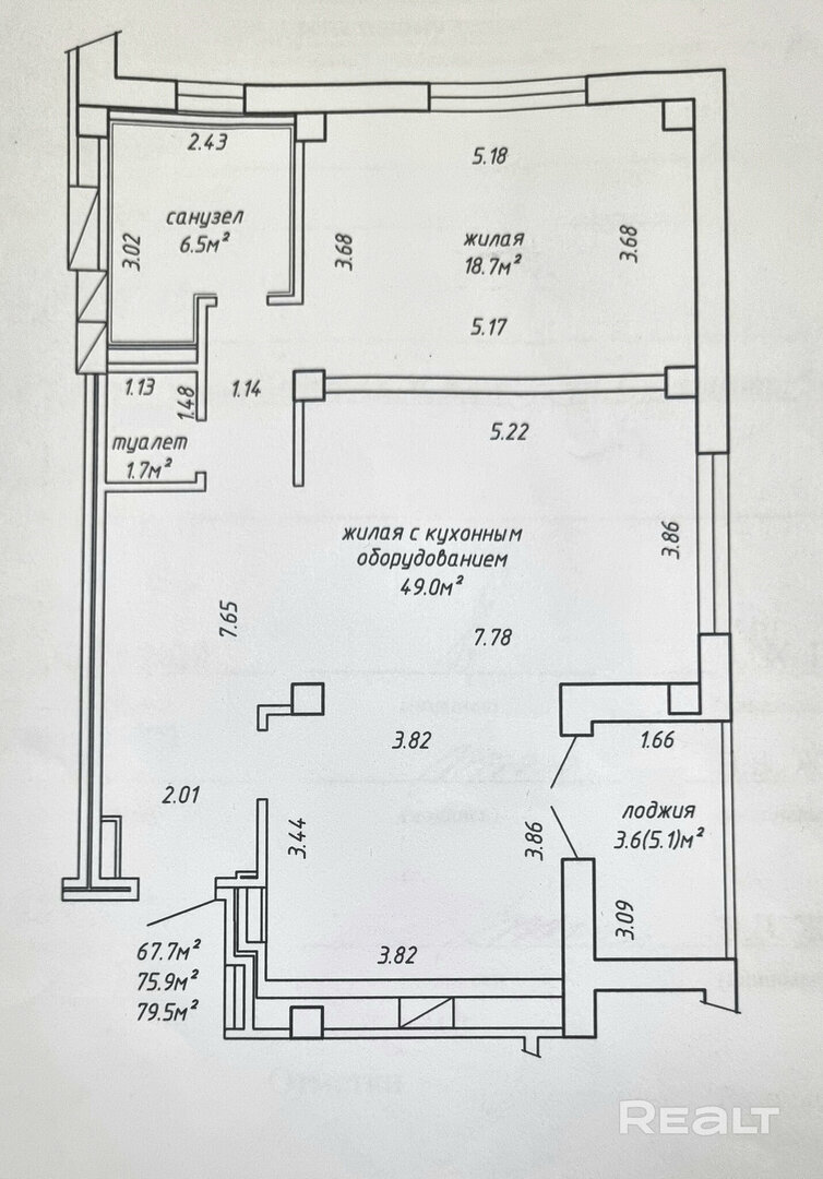 Также в продаже есть двухкомнатная квартира, которую можно переделать в полноценную евротрешку. Жилье находится на 6-м этаже и насчитывает 79 квадратных метров площади. Внутри есть отделка и санузлы, но отсутствует кухонное оборудование, мебель и техника. Продается жилье за 174 тысяч долларов (2189 долларов — за метр).